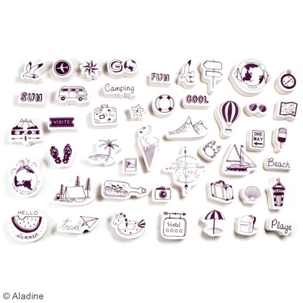 Cet assortiment de tampons Stampo Voyage est parfait pour réaliser tous vos projets créatifs en carterie, faire-part, scrapbooking et décoration.