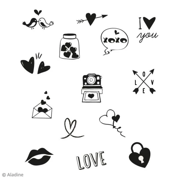 Données techniques pour Kit Stampo Bocal – Amour – 14 tampons et 1 encreur