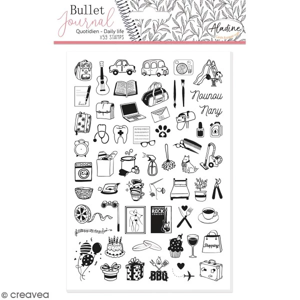 Ce set de 59 tampons Quotidien d’Aladine sera parfait pour personnaliser votre Bullet Journal (Bujo) et organiser votre quotidien !