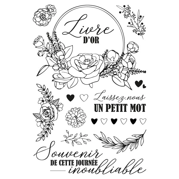 - Motifs : « Livre d’or », Fleurs, « Laissez-nous un petit mot », « Souvenirs de cette journée inoubliable », coeurs …