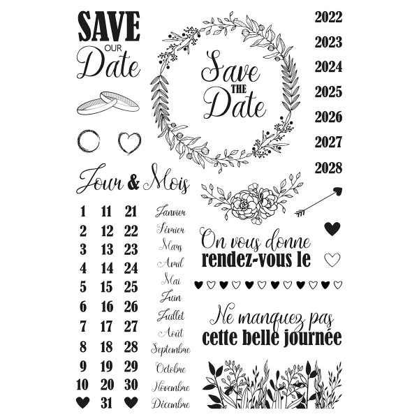 Description de Tampons Stampo My wedding planner – Save the date – 24 pcs