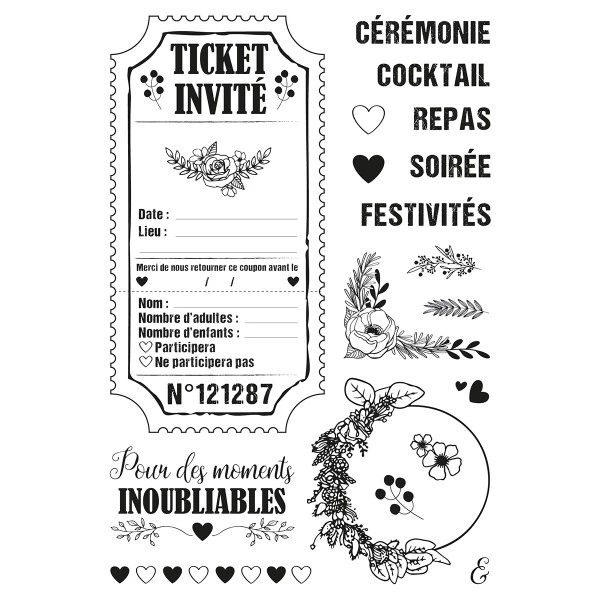 Description de Tampons Stampo My wedding planner – Ticket réponse – 18 pcs