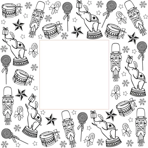 Données techniques pour Tampon Doodler – Cadre Parade de Noël – 13,5 x 13,5 cm