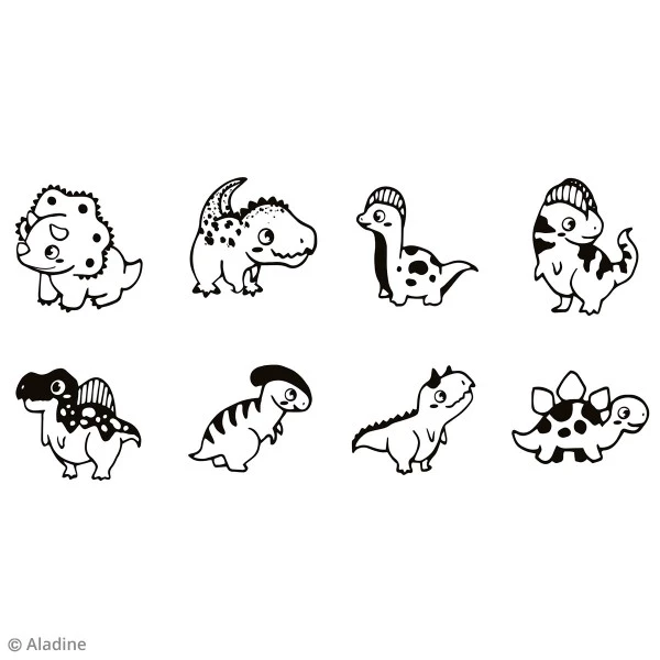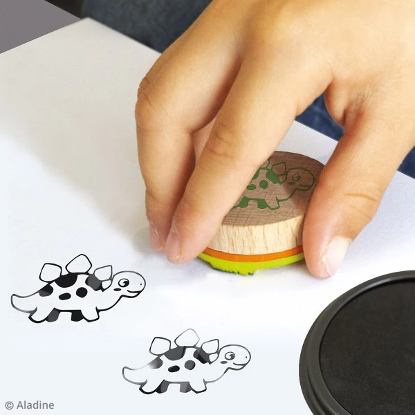 Ce kit créatif contient 1 encreur noir à séchage rapide + 8 tampons en bois à empreinte caoutchouc, idéal pour créer tout un univers sur le thème Dinosaure.