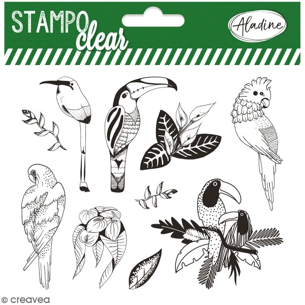 Ce set de 10 tampons Stampo Clear Oiseaux tropicaux est parfait pour vos créations de faire-part, scrapbooking, carterie, home déco ou toutes autres idées créatives.
