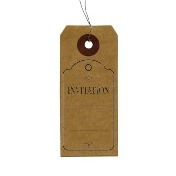 Description de Etiquettes kraft + Tampon bois Invitation