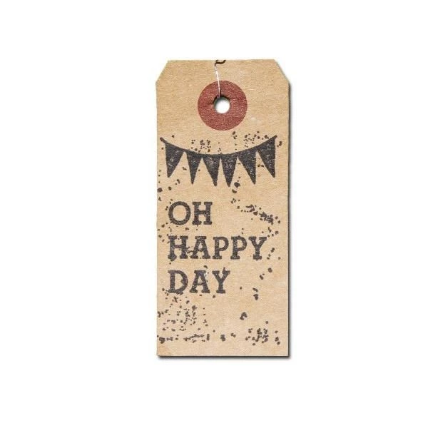 Description de Etiquettes kraft + Tampon bois Oh Happy day