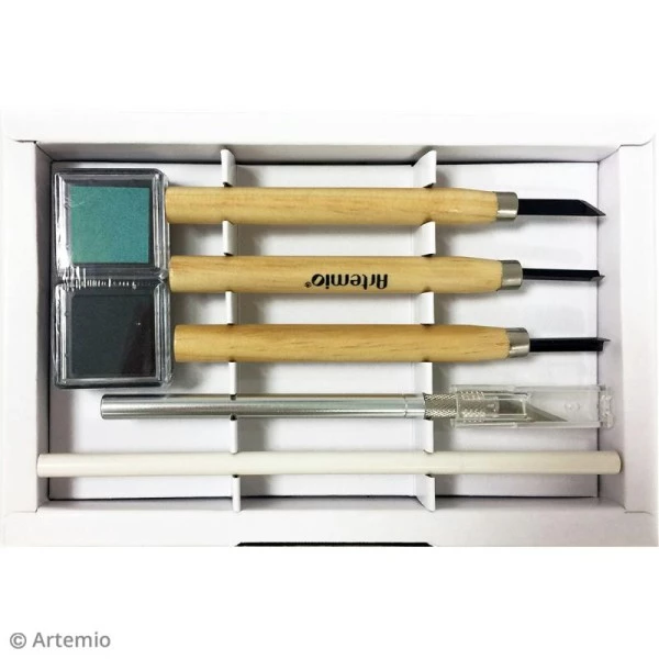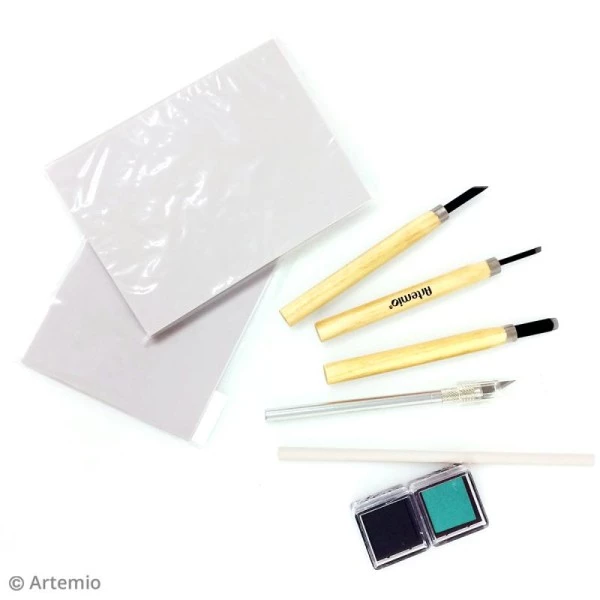 Avec ce kit de gravure sur gomme Artemio aux motifs divers (87 illustrations), vous pourrez vous initier à la technique ancestrale de la gravure ! En effet, avec ce kit vous allez pouvoir sculpter très facilement les gommes appliquant un dessin décalqué dessus, pour fabriquer des tampons uniques. Servez-vous de ces tampons faits-main pour décorer tous vos projets de scrapbooking, carterie et home déco !