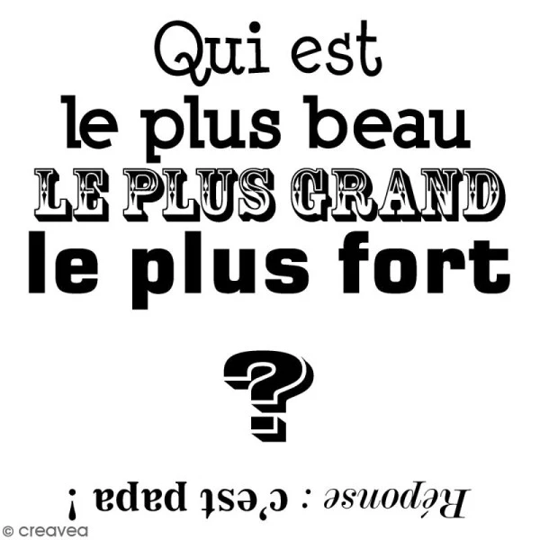 La superbe qualité du tampon Devinette Papa vous assurera des centaines d’impressions parfaites sur le papier, le carton et autres supports. Pour la fête des Pères, personnalisez vos cartes, vos faire-parts et pages de scrap avec ce beau tampon en bois Devinette Papa !