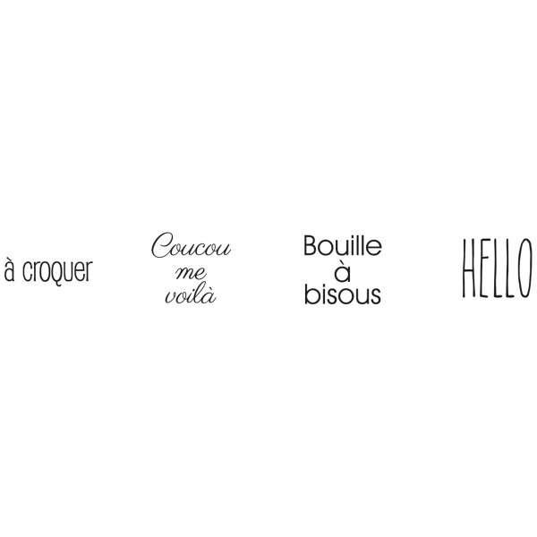 - Motifs« A croquer », « Coucou me voilà », « Bouille à bisous », « Hello »