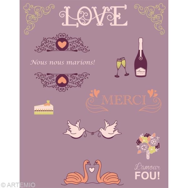 Planche mini tampons transparents Mariage 3 pour agrémenter vos créations de carterie, scrapbooking et faire-part :