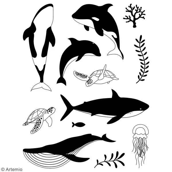 Description de Tampons clear Monde marin – Set de 12 tampons
