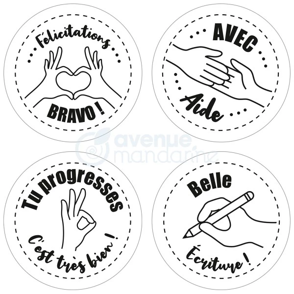 - Motifs«Félicitations, Bravo», «Avec aide», «Tu progresses c’est très bien», «Belle écriture»