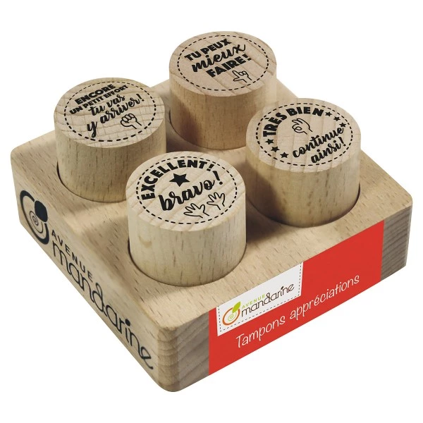 Description de Set de tampons bois – Appréciations Textes – Ø 25 mm – 4 pcs