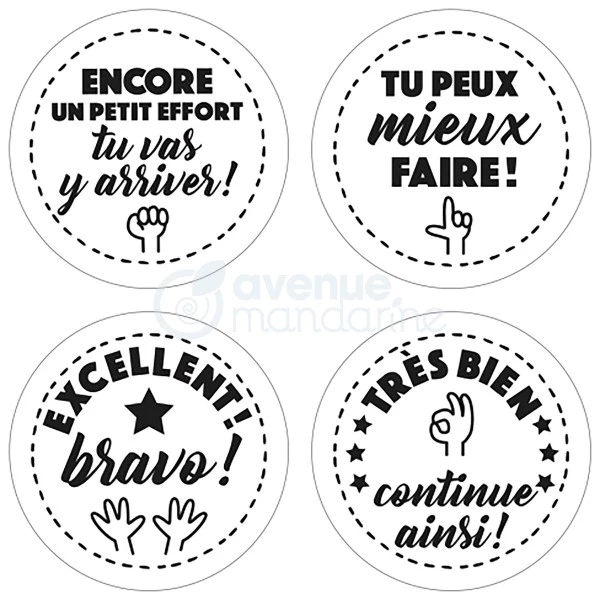 - Motifs«Encore un petit effort, tu vas y arriver», «Tu peux mieux faire», «Excellent Bravo», «Très bien continu ainsi ! »