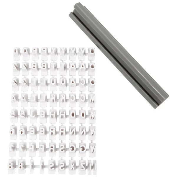 Envie d’imprimer vos messages personnalisés sur vos créations en pâte polymère, pâte à sel, pâte à sucre, argile etc. Ou de personnalisez vos biscuits ? C’est désormais possible avec le kit tampon alphabet et chiffres ! Ce kit contient 1 réglette en plastique ainsi que des tampons tampons alphabet et chiffres à glisser dedans pour former les mots que vous souhaitez.