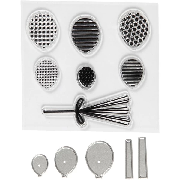 Description de Set de scrapbooking Ballons – Tampons transparents, Matrices de coupe et de gaufrage – 21 pcs