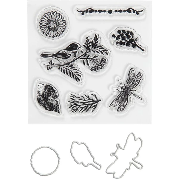 Description de Set de scrapbooking Nature – Tampons transparents, Matrices de coupe et de gaufrage – 10 pcs