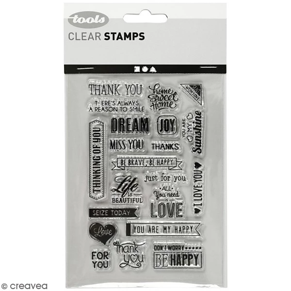 Description de Set de tampons transparents – Mots anglais – 22 pcs