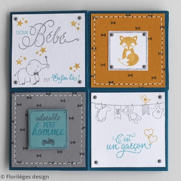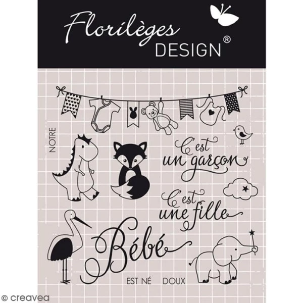Planche 10 x 10 cm contenant 13 tampons transparents Florilèges Design Adorable bébé pour embellir vos créations de carterie, faire-part, scrapbooking, décoration home déco ou tout autre idée créative. Vous pourrez utiliser votre tampon transparent Adorable bébé de différentes manières. En effet, vous pourrez opter pour un encrage classique, réaliser une colorisation, utiliser de la poudre à embosser pour donner un maximum de relief, combiner vernis et poudre pailletée, etc. Pour utiliser votre set de tampons clears Florilèges Adorable bébé, il vous faudra utiliser un bloc de positionnement. Grâce à la transparence du tampon et du bloc de positionnement, vous pourrez placer précisément l’empreinte du tampon sur votre création.