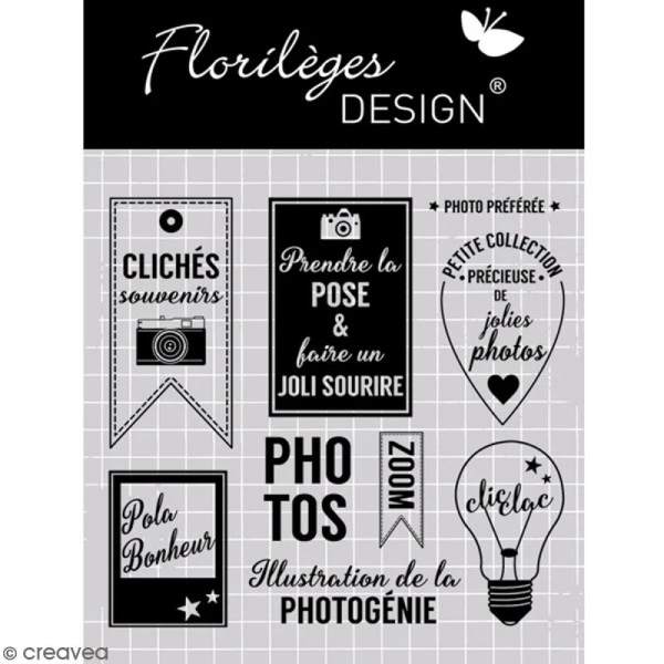 Planche 10 x 10 cm contenant 9 tampons transparents Florilèges Design Pose et joli sourire pour embellir vos créations de carterie, faire-part, scrapbooking, décoration home déco ou tout autre idée créative. Vous pourrez utiliser votre tampon transparent Pose et joli sourire de différentes manières. En effet, vous pourrez opter pour un encrage classique, réaliser une colorisation, utiliser de la poudre à embosser pour donner un maximum de relief, combiner vernis et poudre pailletée, etc. Pour utiliser votre set de tampons clears Florilèges Pose et joli sourire, il vous faudra utiliser un bloc de positionnement. Grâce à la transparence du tampon et du bloc de positionnement, vous pourrez placer précisément l’empreinte du tampon sur votre création.