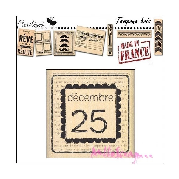 Description de Tampon bois 25 Décembre Florilèges Design