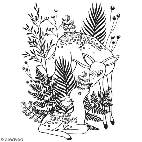 Utilisez ce tampon en bois Biche et faon avec différents encreurs pour de l’encrage classique, engrage chalk, colorisation, etc.
