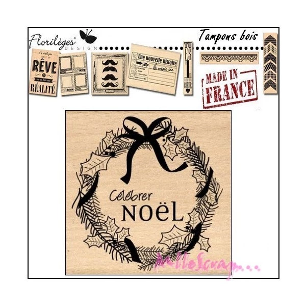 Description de Tampon bois Couronne de Noel Florilèges Design