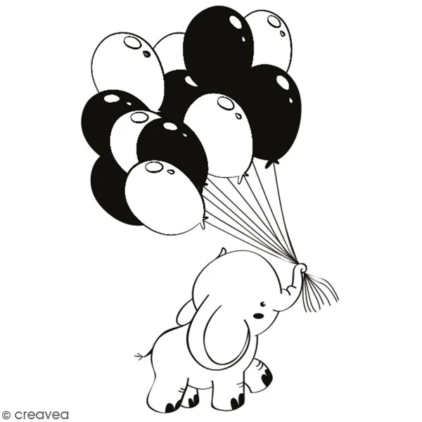 Description de Tampon en bois Aladine – Eléphant Ballons – 4 x 6 cm