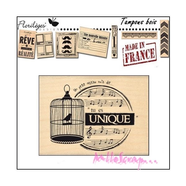 Données techniques pour Tampon bois Tu es unique Florilèges Design