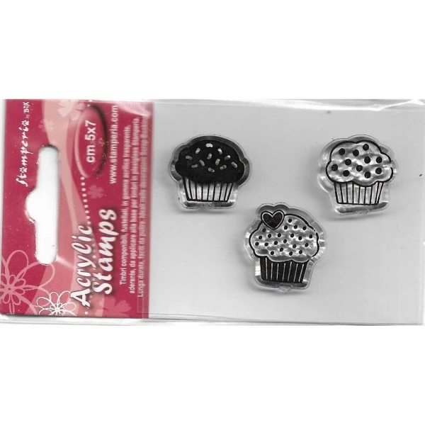 Données techniques pour 3 Tampons Acryliques Transparents Cupcakes Scrapbooking Carterie WTK024 Stamperia