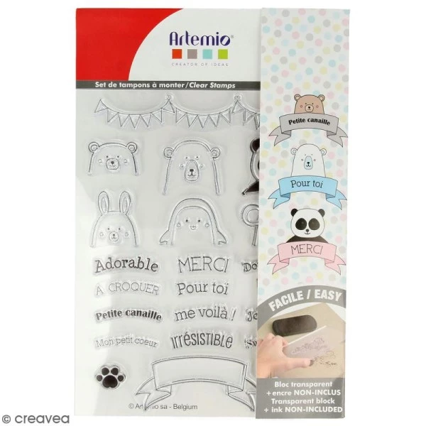Ce set de tampons transparents de la collection Adorable de Artemio sera parfait pour vos créations de carterie, faire-part, scrapbooking, décoration home déco ou tout autre idée créative. Vous pourrez utiliser votre tampon transparent de différentes manières.