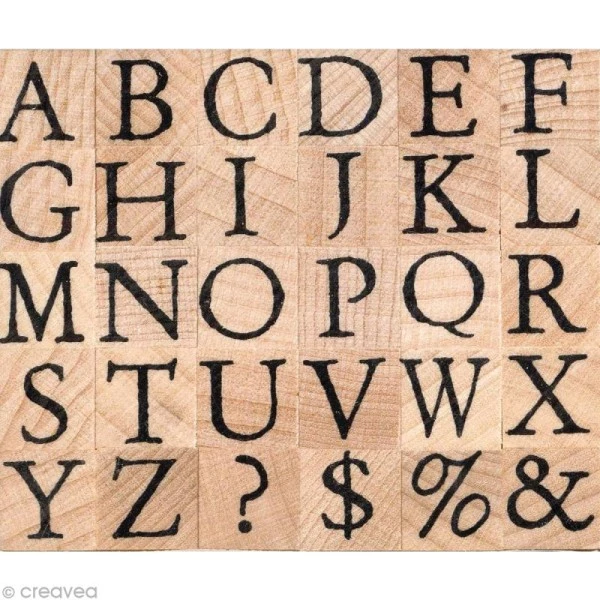 Coffret de 30 petits tampons alphabet Antique majuscule de la marque Artemio pour le scrapbooking, la carterie et la décoration.